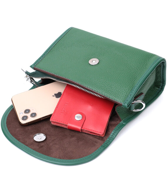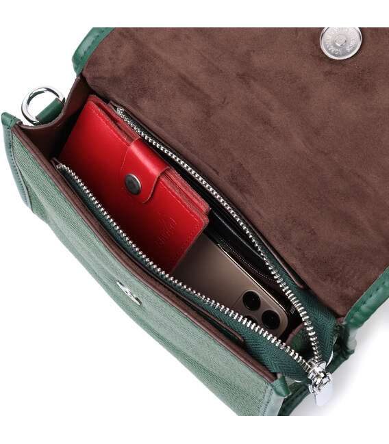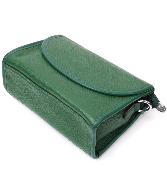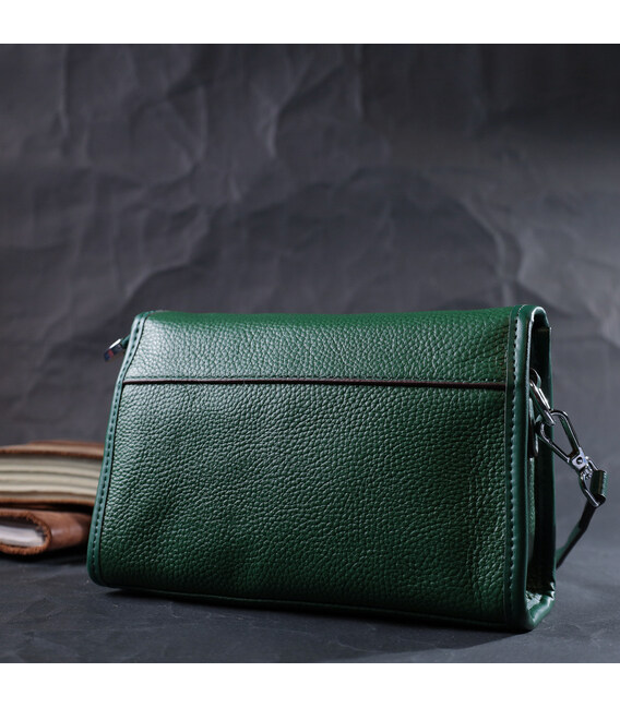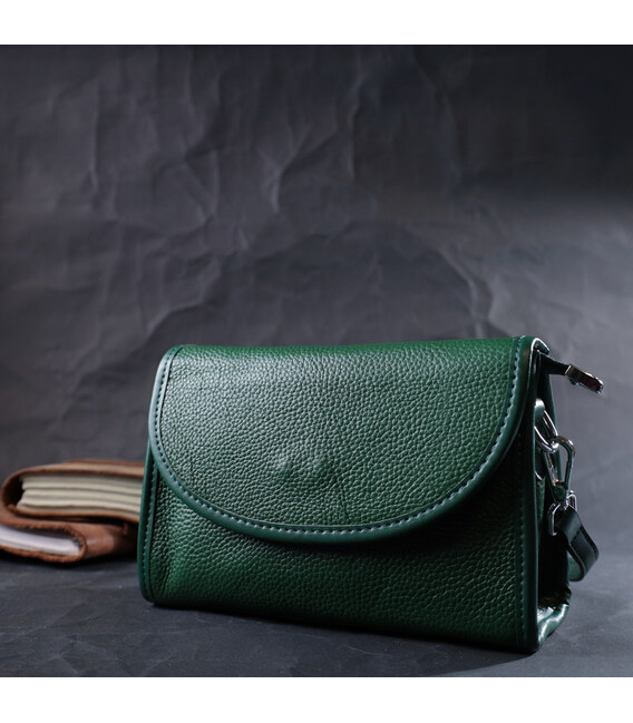 Описание Компактная женская кожаная сумка с полукруглым клапаном Vintage 22260 Зеленая