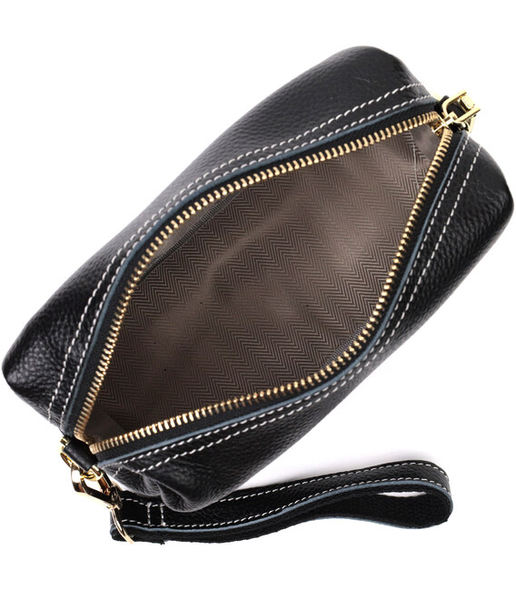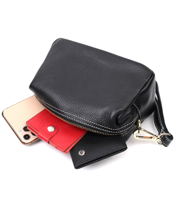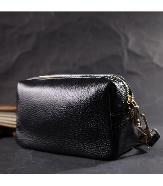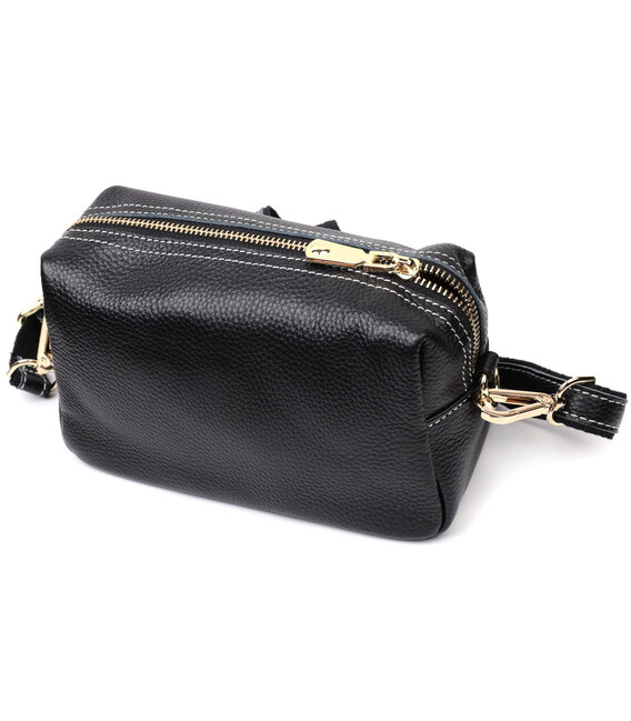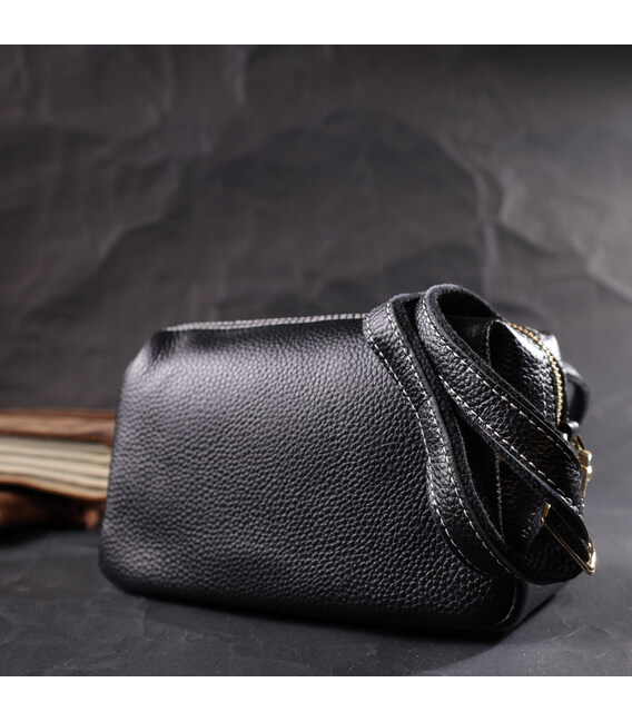Описание Женская элегантная сумка с двумя ремнями из натуральной кожи Vintage 22276 Черный