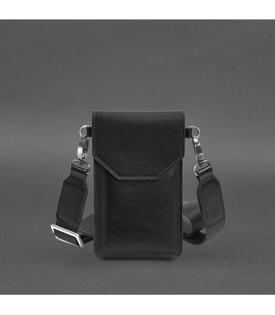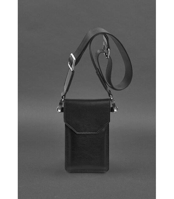 Кожаная сумка-чехол для телефона черная