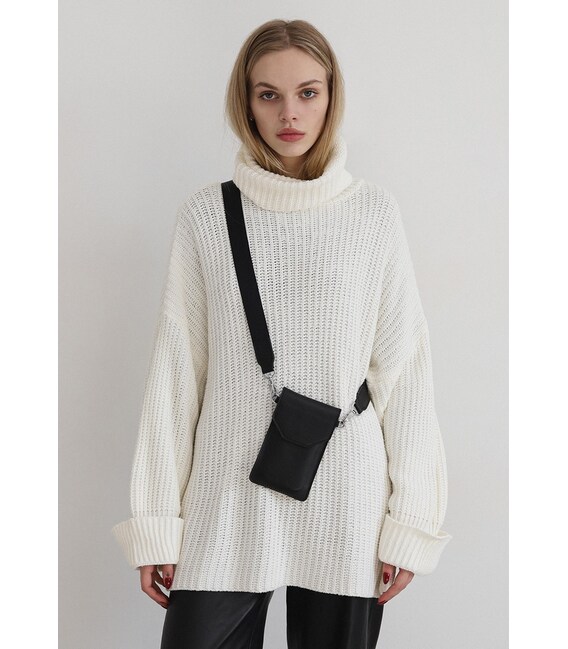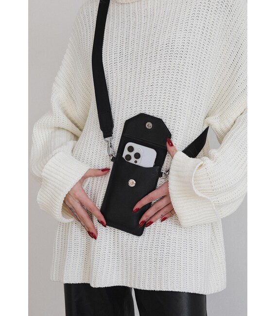 Описание Кожаная сумка-чехол для телефона черная