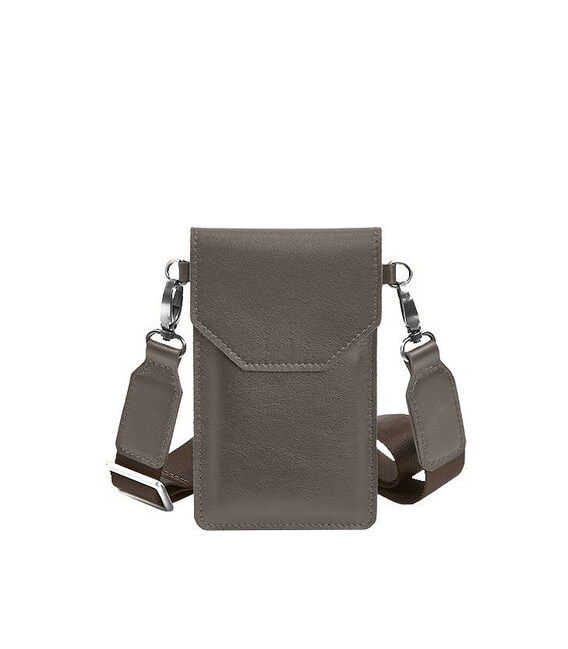 Описание Кожаная сумка-чехол для телефона темно-бежевая
