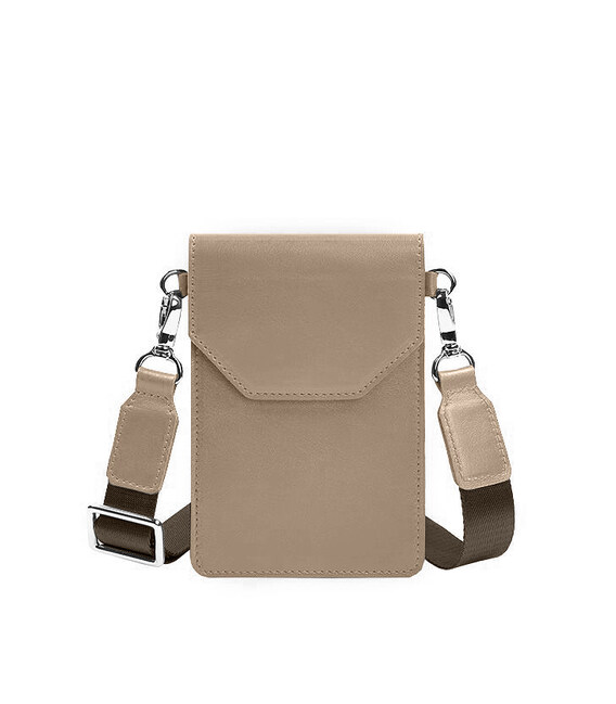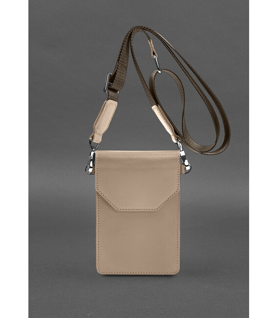 Описание Кожаная сумка-чехол для телефона maxi Светло-бежевый