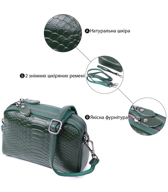 Описание Женская компактная сумка на два отделения из натуральной кожи Vintage 22802 Зеленый
