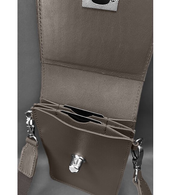 Описание Кожаная сумка-чехол для телефона Tina Темно-бежевая