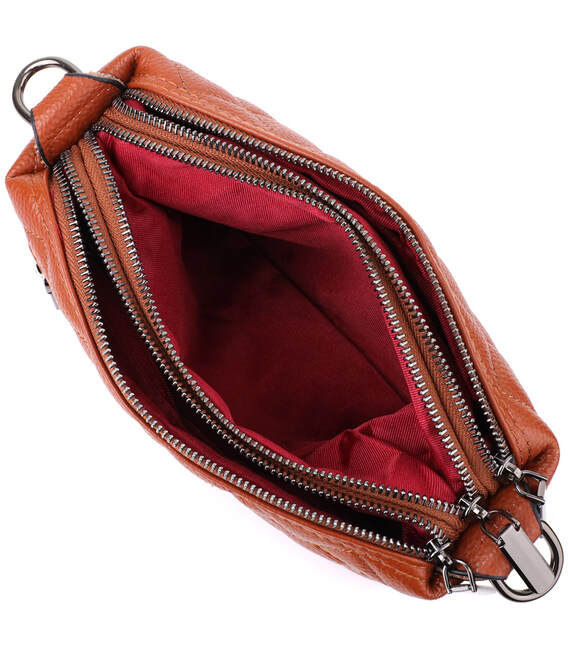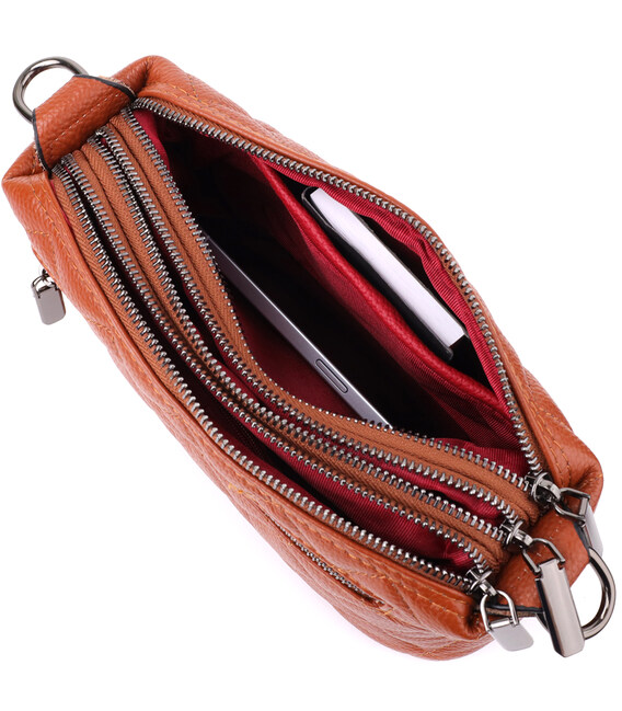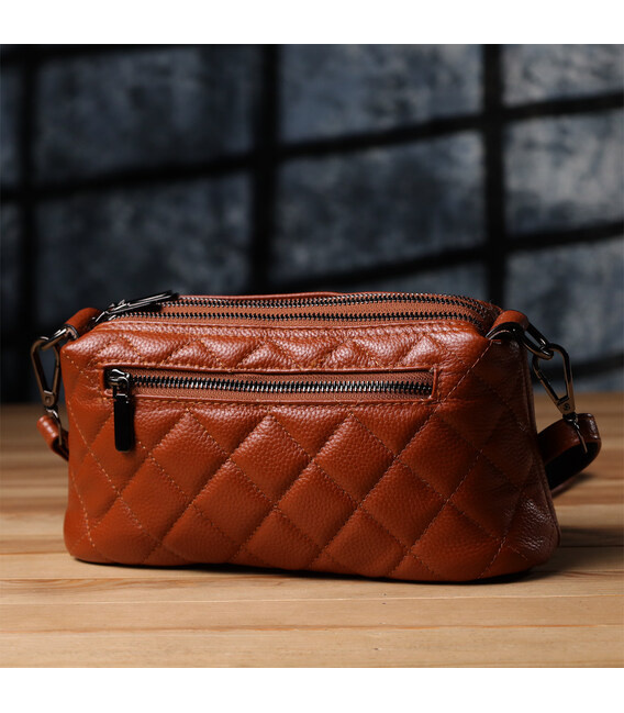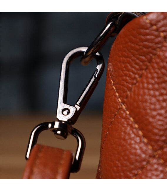 Описание Женская сумка прошита модными ромбами из натуральной кожи Vintage sale_15143 Рыжий
