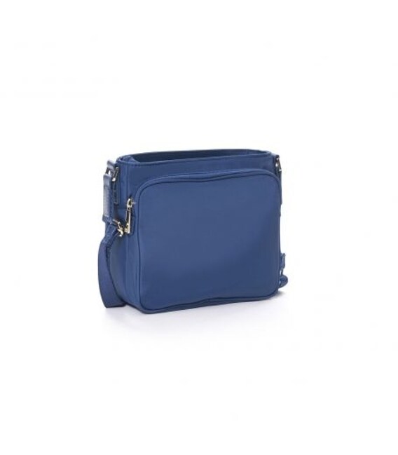 Компактная сумочка из прочной ткани, оснащена ремнем, позволяющим регулировать длину. У изделия есть три отделения на молнии. В одном отделении есть карман на молнии, в другом - карман для документов, бизнес-мелочей и карабин для ключей. Третье отделение предусмотрено для телефона, закрывается на молнию. На фасадной части расположен карман на молнии.