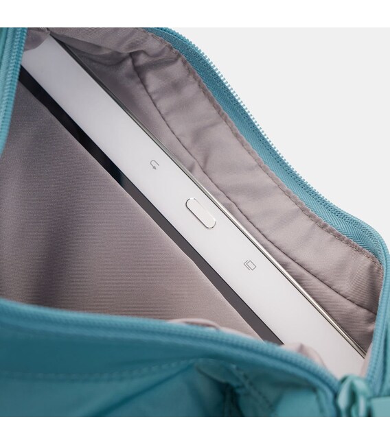 Удобная женская сумка, среднего размера изготовлена из прочной ткани 100% Twiil Nylon с плечевым ремнем позволяющим регулировать длину. Изделие оснащено одним большим отделением на молнии, внутри которого есть мягкое отделение для планшета, и карман на молнии с RFID-защитой от считывания Ваших персональных данных. На фасадной части расположен карман на молнии, внутри которого есть отделение, где можно расположить телефон или документы. Изделие декорировано брелоком с названием бренда.