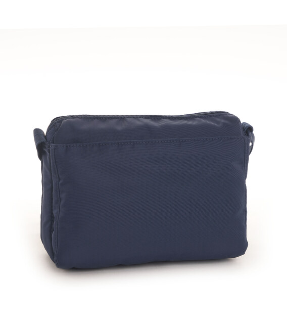 Удобная женская сумка через плечо, небольшого размера изготовлена из прочной ткани с ремнем, позволяющим регулировать длину. У изделия есть три отделения на молнии, в одном из которых есть карман на молнии и карман для документов, телефона и мелочей. На фасадной части расположен карман на молнии.