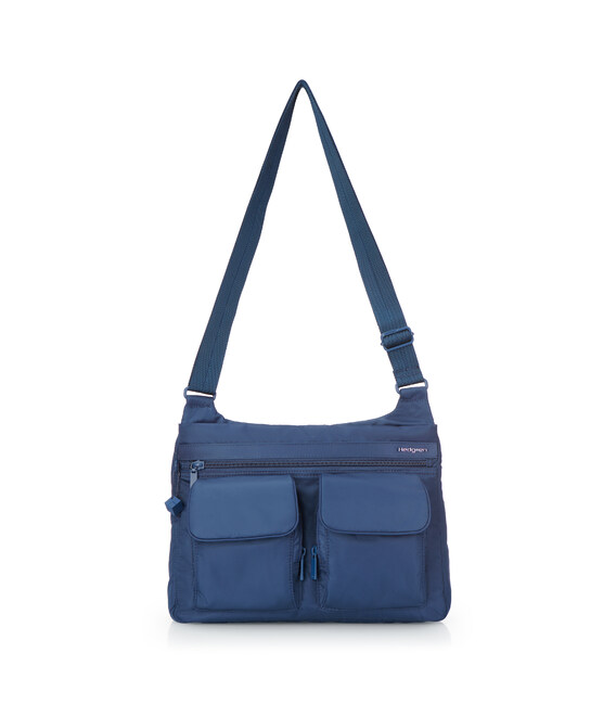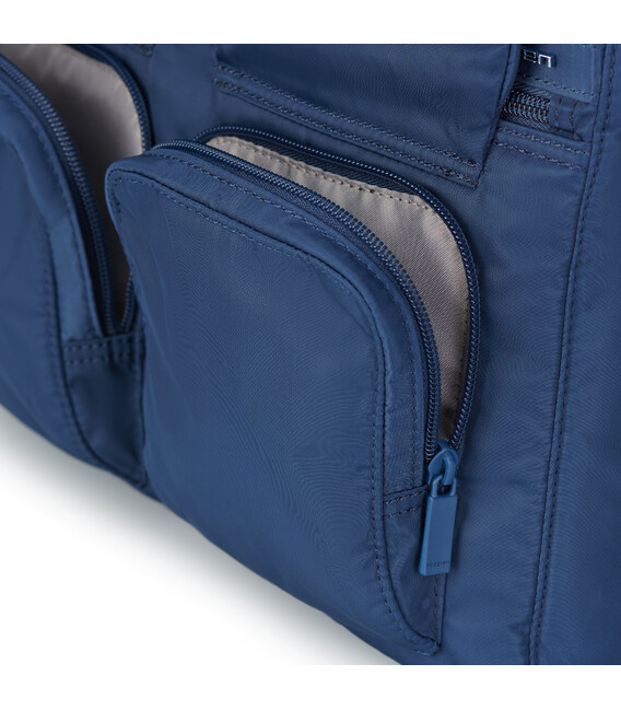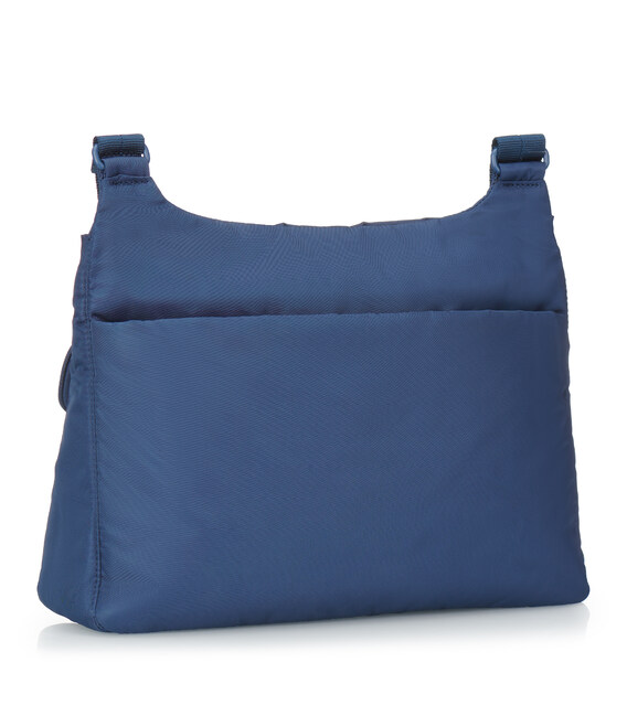 Сумка среднего размера изготовлена из прочной ткани 100% Twiil Nylon. Сумку можно носить на плече, благодаря регулируемому плечевому ремню. У изделия есть три отделения на молнии. В основном, вместительном отделении есть карман на молнии с RFID-защитой от считывания Ваших персональных данных, на внешней стороне сумки размещено второе отделение, которое оснащено мини-офисом, где можно расположить смартфон и пишущие принадлежности. Также, фасадной части расположено два небольших накладных кармана на молнии, которые прикрываются клапанами на магнитной кнопке, в которых можно разместить вещи первой необходимости. Третье отделение расположено на задней стороне сумки, закрывается на молнию. Изделие декорировано брелоком с названием бренда. Сумка может быть использована в любой ситуации - в городе, для бизнеса или в поездке.
