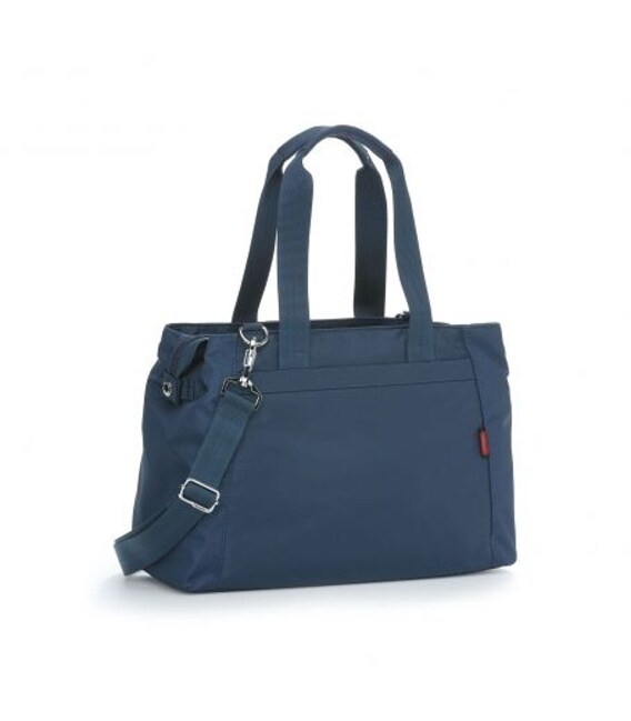 Вместительная деловая сумка из прочной ткани. Оснащена крепкими подъемными ручками для переноски. Сумку можно носить на плече, благодаря съемному настраиваемому плечевому ремню. У изделия есть три отделения. Центральное отделение на молнии, внутри которого есть карман для планшета на одной стенке, и отделение на молнии на другой. Также отделение разделяется с помощью кармана на молнии. Два остальных отделения закрываются с помощью кнопки. На фасадной части расположен прорезной карман на молнии, внутри которого есть небольшой карман на резинке для телефона. Изделие декорировано брелоком на карабине с названием бренда. Сумка может быть использована в любой ситуации - в городе, для бизнеса или в поездке.