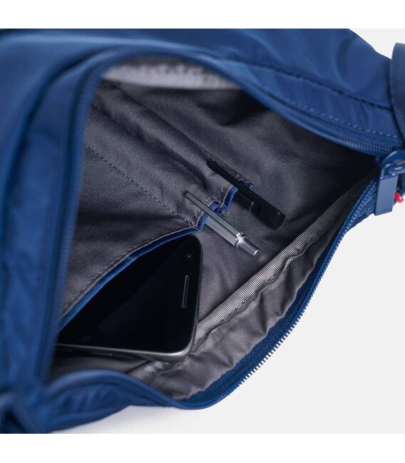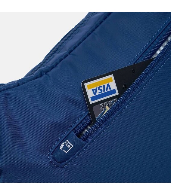 На фронтальной и тыловой поверхностях сумки имеются дополнительные закрывающиеся внешние карманы. Причем, задний карман имеет RFID защиту, что убережет от случайного или намеренного считывания информации данных с кредитных карт, биометрических паспортов и пр. сторонними лицами.