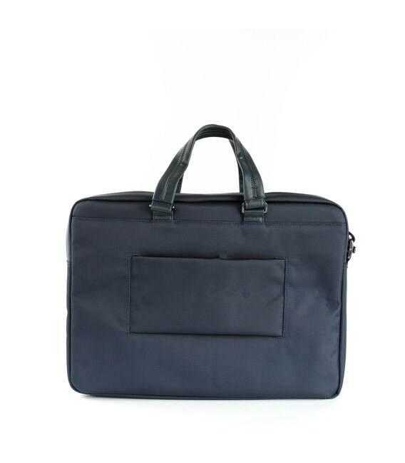 Мужской портфель коллекции Wall Street изготовлен из прочного материала - нейлона и ПВХ, что придает изделию долговечность в использовании. В данном изделии есть два отделения, с внешней стороны расположены два кармана, один из которых на молнии, по бокам есть карманы для мелких вещей. Предусмотрены отделения для ноутбука с диагональю 15,6" и планшета с диагональю 10", смартфона, а также пластиковых карт, визиток, ручек и др. Аксессуар имеет две короткие ручки, а также съемный плечевой ремень, металлические детали которого украшены логотипом RV. Фронтальные углы изделия дополнительно защищены накладками. С задней стороны есть возможность крепления к телескопической ручке чемодана.