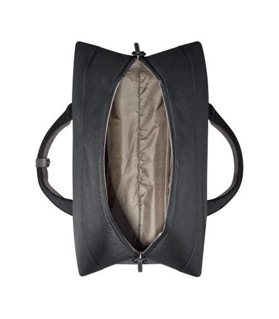 Отличительной чертой являются двухцветные детали изделия — переносные ручки с зажимом по центру и боковые карманы. Сумка создана из качественного полиэстера, состоит из просторного внутреннего отделения, закрывающегося на молнию. Имеется карман на всю ширину фронтальной поверхности сумки, на боках есть удобные отделы для разных мелочей, что позволяет разместить под рукой все необходимое.