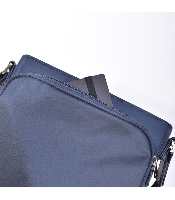 Компактная сумочка из прочной ткани 100% Twill Nylon+кожа, оснащена ярким ремнем, позволяющим регулировать длину. У изделия есть три отделения на молнии. В одном отделении есть карман на молнии, в другом - карман для документов, необходимых мелочей и карабин для ключей. Третье отделение предусмотрено для телефона, закрывается на молнию. На фасадной части расположен карман на молнии. Также изделие декорировано брелоком с названием бренда. Эта сумка будет стильным дополнением к Вашему ежедневному образу.