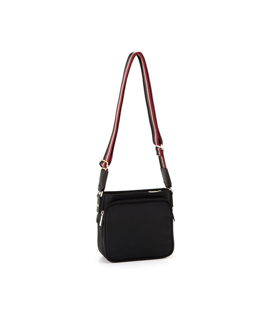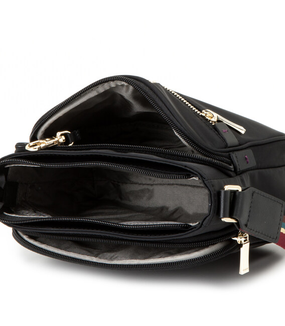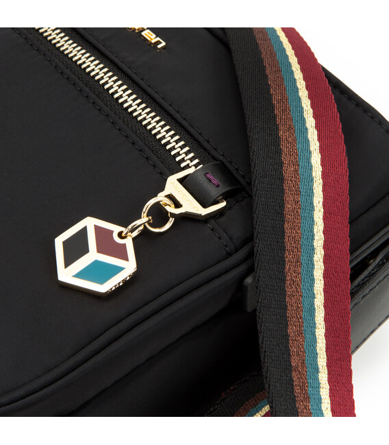 Компактная сумочка из прочной ткани 100% Twill Nylon+кожа, оснащена ярким ремнем, позволяющим регулировать длину. У изделия есть три отделения на молнии. В одном отделении есть карман на молнии, в другом - карман для документов, необходимых мелочей и карабин для ключей. Третье отделение предусмотрено для телефона, закрывается на молнию. На фасадной части расположен карман на молнии. Также изделие декорировано брелоком с названием бренда. Эта сумка будет стильным дополнением к Вашему ежедневному образу.