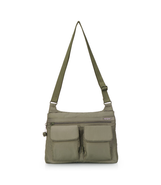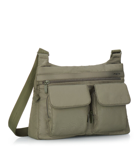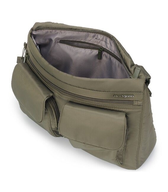 Сумка среднего размера изготовлена из прочной ткани 100% Twiil Nylon. Сумку можно носить на плече, благодаря регулируемому плечевому ремню. У изделия есть три отделения на молнии. В основном, вместительном отделении есть карман на молнии с RFID-защитой от считывания Ваших персональных данных, на внешней стороне сумки размещено второе отделение, которое оснащено мини-офисом, где можно расположить смартфон и пишущие принадлежности. Также, фасадной части расположено два небольших накладных кармана на молнии, которые прикрываются клапанами на магнитной кнопке, в которых можно разместить вещи первой необходимости. Третье отделение расположено на задней стороне сумки, закрывается на молнию. Изделие декорировано брелоком с названием бренда. Сумка может быть использована в любой ситуации - в городе, для бизнеса или в поездке.
