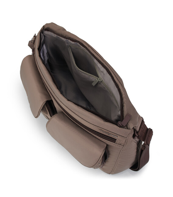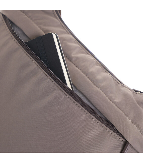 Сумка среднего размера изготовлена из прочной ткани 100% Twiil Nylon. Сумку можно носить на плече, благодаря регулируемому плечевому ремню. У изделия есть три отделения на молнии. В основном, вместительном отделении есть карман на молнии с RFID-защитой от считывания Ваших персональных данных, на внешней стороне сумки размещено второе отделение, которое оснащено мини-офисом, где можно расположить смартфон и пишущие принадлежности. Также, фасадной части расположено два небольших накладных кармана на молнии, которые прикрываются клапанами на магнитной кнопке, в которых можно разместить вещи первой необходимости. Третье отделение расположено на задней стороне сумки, закрывается на молнию. Изделие декорировано брелоком с названием бренда. Сумка может быть использована в любой ситуации - в городе, для бизнеса или в поездке.