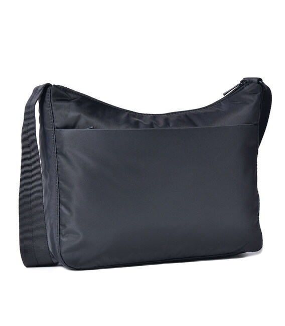 Удобная женская сумка, среднего размера изготовлена из прочной ткани 100% Twiil Nylon с плечевым ремнем позволяющим регулировать длину. Изделие оснащено одним большим отделением на молнии, внутри которого есть мягкое отделение для планшета, и карман на молнии с RFID-защитой от считывания Ваших персональных данных. На фасадной части расположен карман на молнии, внутри которого есть отделение, где можно расположить телефон или документы. Изделие декорировано брелоком с названием бренда.