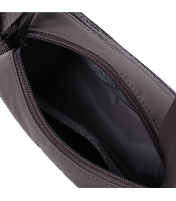 Удобная и компактная сумка через плечо, небольшого размера изготовлена из прочной ткани с ремнем, что позволяет регулировать длину. В изделии есть основное отделение на молнии, в котором расположен карман с RFID-защитой от мошенничества, а также отдел для телефона и мелочей. На фасадной части изделия накладные карманы спереди и с обеих сторон закрываются молнией с качественной фурнитурой.