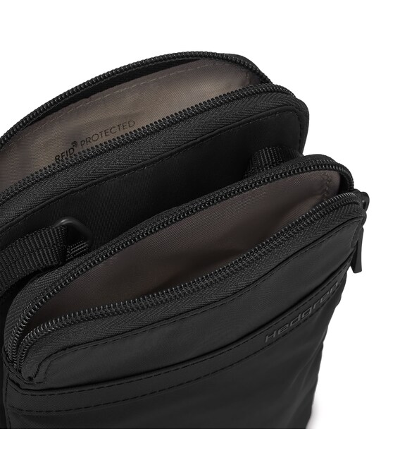 Изделие не большого размера оснащено регулируемым по длине ремнем. Имеет два основных отделения на молнии, одно из которых оснащено RFID-защитой от считывания персональных данных с карт и документов. Во втором отделении можно разместить смартфон и другие необходимые мелочи. Станет идеальным спутником в путешествии или как повседневный аксессуар.
