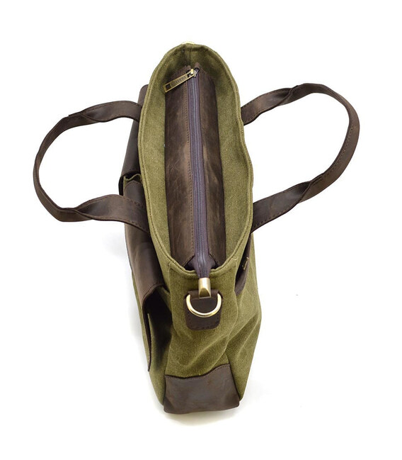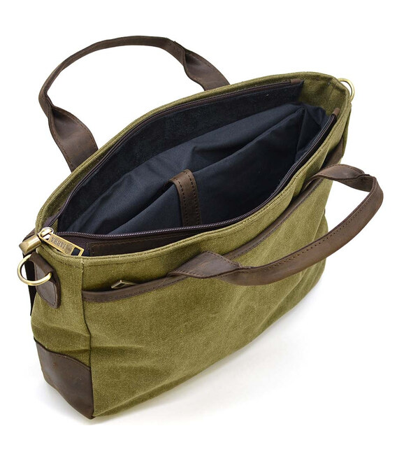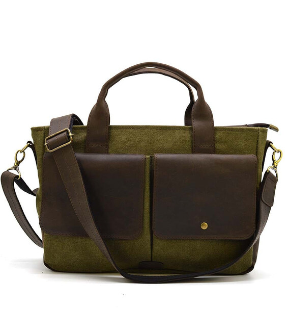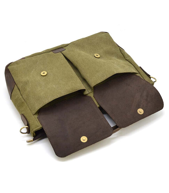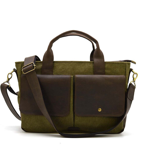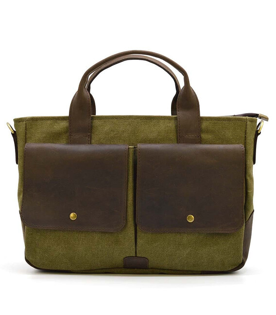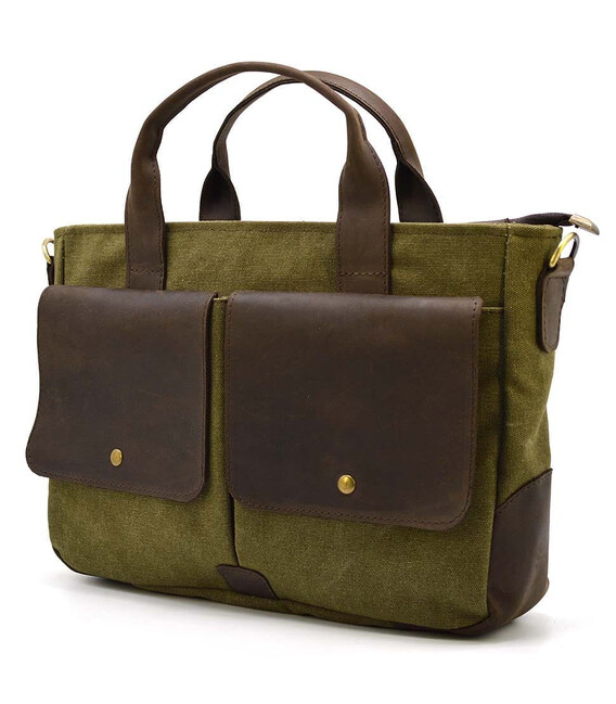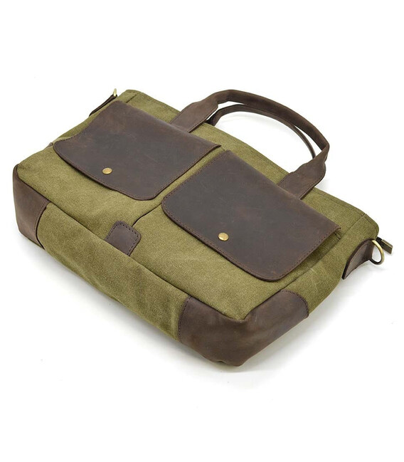 Чоловіча сумка з канвас та кінської шкіри TARWA RHc-3990-3md хаккі канвас (парусина) та коричнева кінська шкіра
