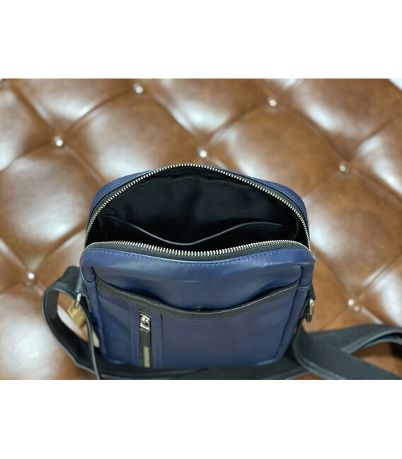 Описание Шкіряна сумка через плече синього кольору M110bu John McDee
