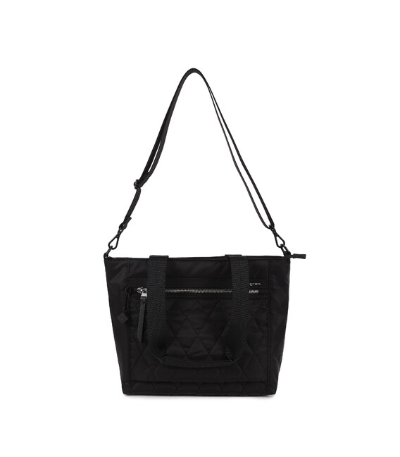 Удобная женская сумка, среднего размера изготовлена из прочной ткани. Сумку можно носить на плече, на предплечье и через плечо благодаря регулируемому съемному плечевому ремню. Изделие имеет основное отделение на молнии снабжено отделом для телефона и дополнительным карманом с RFID-защитой, а также наружным карманом на молнии. Декорированный брелоком с названием бренда.
