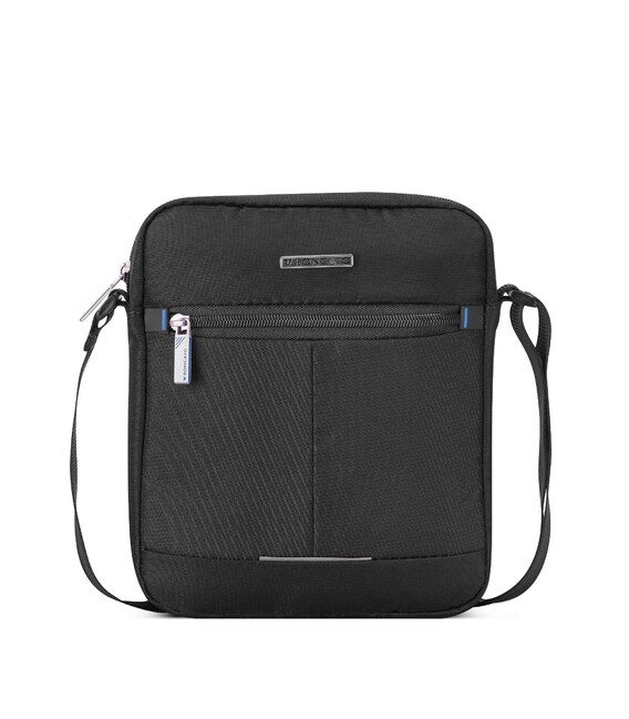 Сумка через плечо из коллекции Easy Office изготовлена из легкого и комбинированного материала – нейлон/полиэстер плотностью 600x500d, что обеспечивает влагостойкость. На фронтальной стороне изделия расположен карман на молнии с декоративной вставкой из резины с контрастным цветом. Имеет основное отделение, где расположен отсек для смартфона и мини-офис для пишущих предметов. Для комфортной переноски, оснащена, регулируемым по длине ремнем. Материал подкладки – 100% полиэстер. С задней стороны изделия также вишен на молнии.