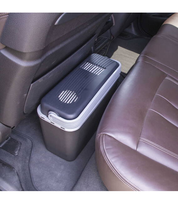 Холодильник охлаждает содержимое до температуры на 15 градусов ниже чем температура окружающей среды при подключении к автомобильному прикуривателю. Он поможет сохранить необходимую температуру охлажденных продуктов и напитков во время поездки, на пикнике или в кемпинге. Для повышения эффективности работы устройства, когда холодильник не подключен к сети, рекомендуется использовать специальные аккумуляторы холода. Это позволит заметно увеличить время хранения продуктов внутри контейнера.