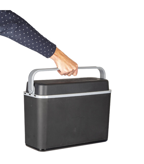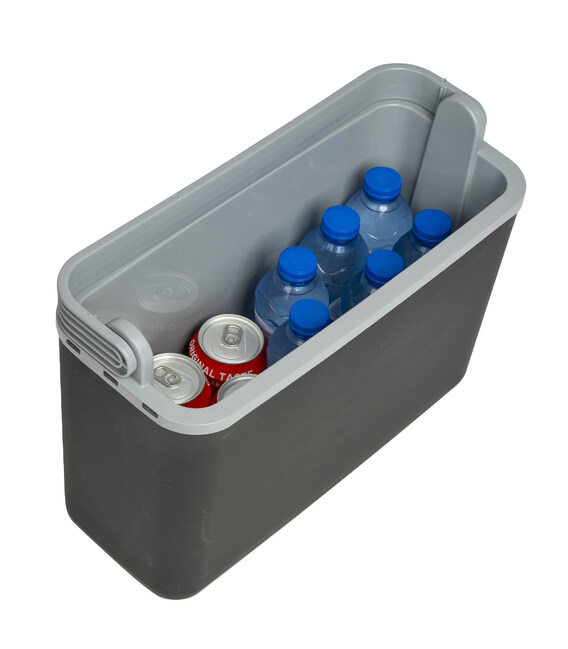Корпус контейнера изготовлен из ударопрочного пластика, внутри используется специальный экологически безопасный пластик, разрешенный для хранения пищевых продуктов. Этот материал отвечает требованиям экологических норм и стандартов ЕС. В качестве основного термоизоляционного материала используется пенополистирол Styrofoam. Холодильник имеет компактные размеры, что делает его идеальным для использования в автомобиле, сумке для велосипеда, на пляже или в парке. Идеально помещается за автомобильным сиденьем. А объем холодильной камеры 12 л, позволяет вместить 2 бутылки по 2 л в горизонтальном положении. Конструкция включает специальный фиксатор закрытого положения, что позволяет обеспечить защиту от непроизвольного выпадения содержимого.