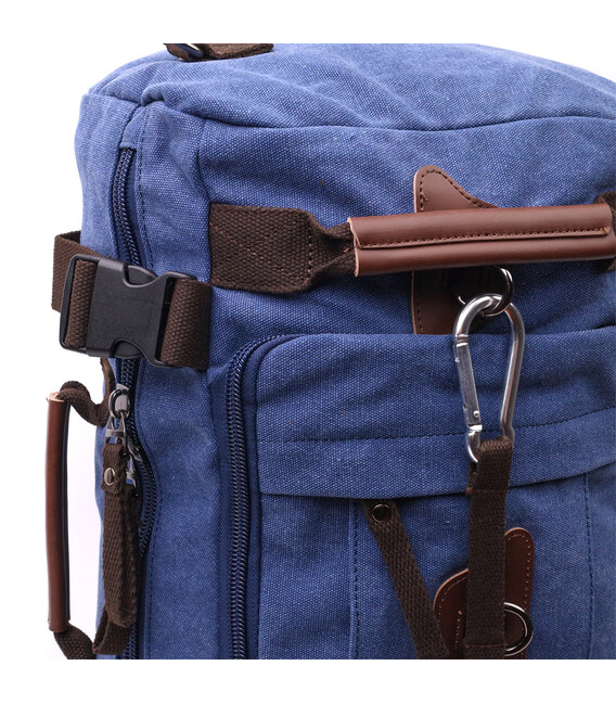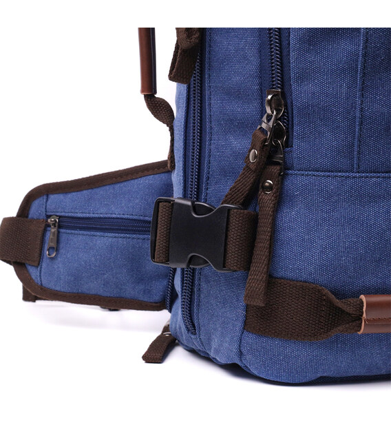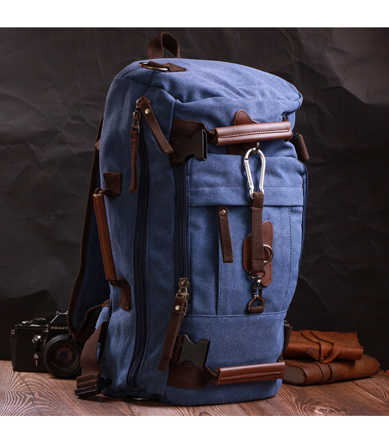 Описание Функциональный рюкзак-трансформер в стиле милитари из плотного текстиля Vintage 22159 Синий