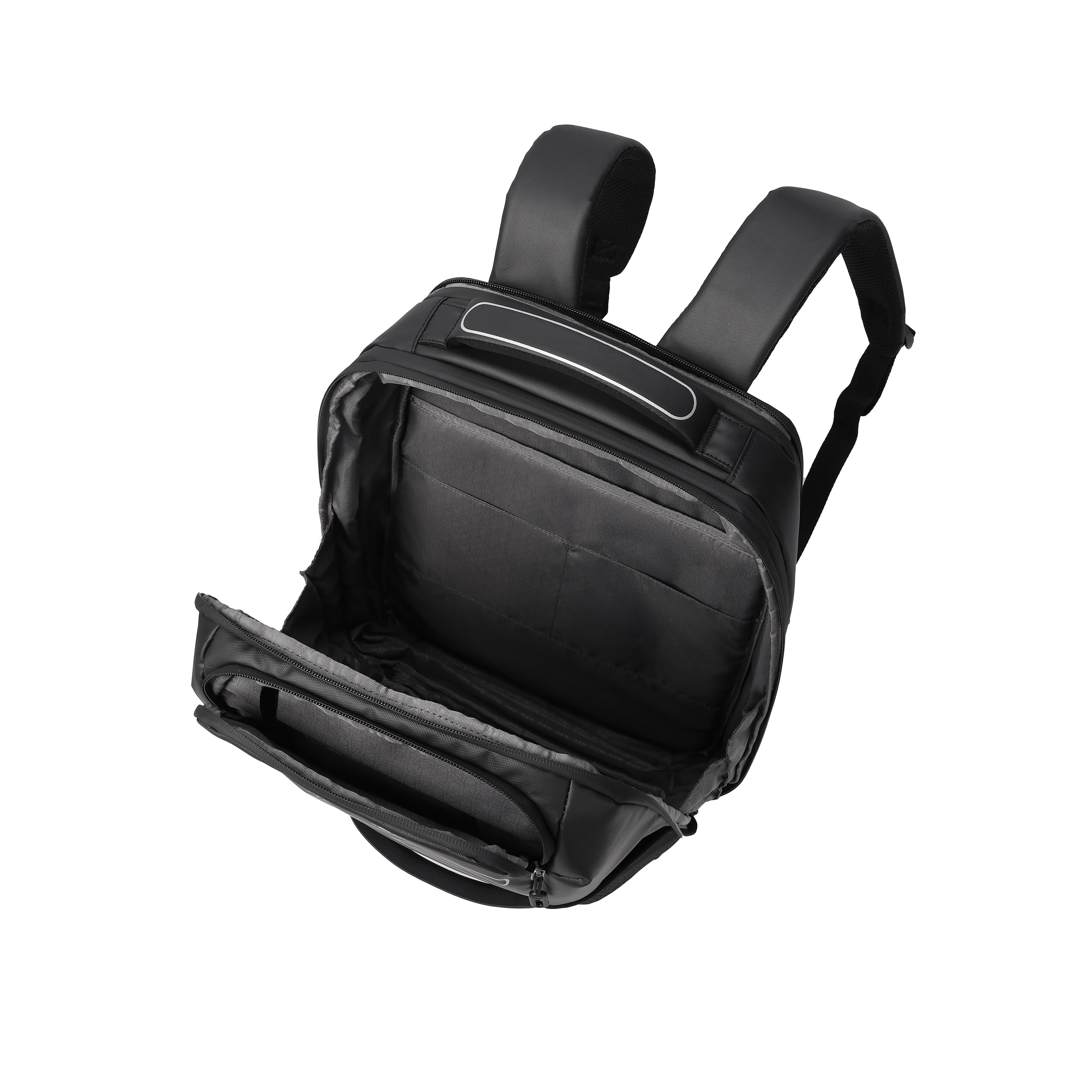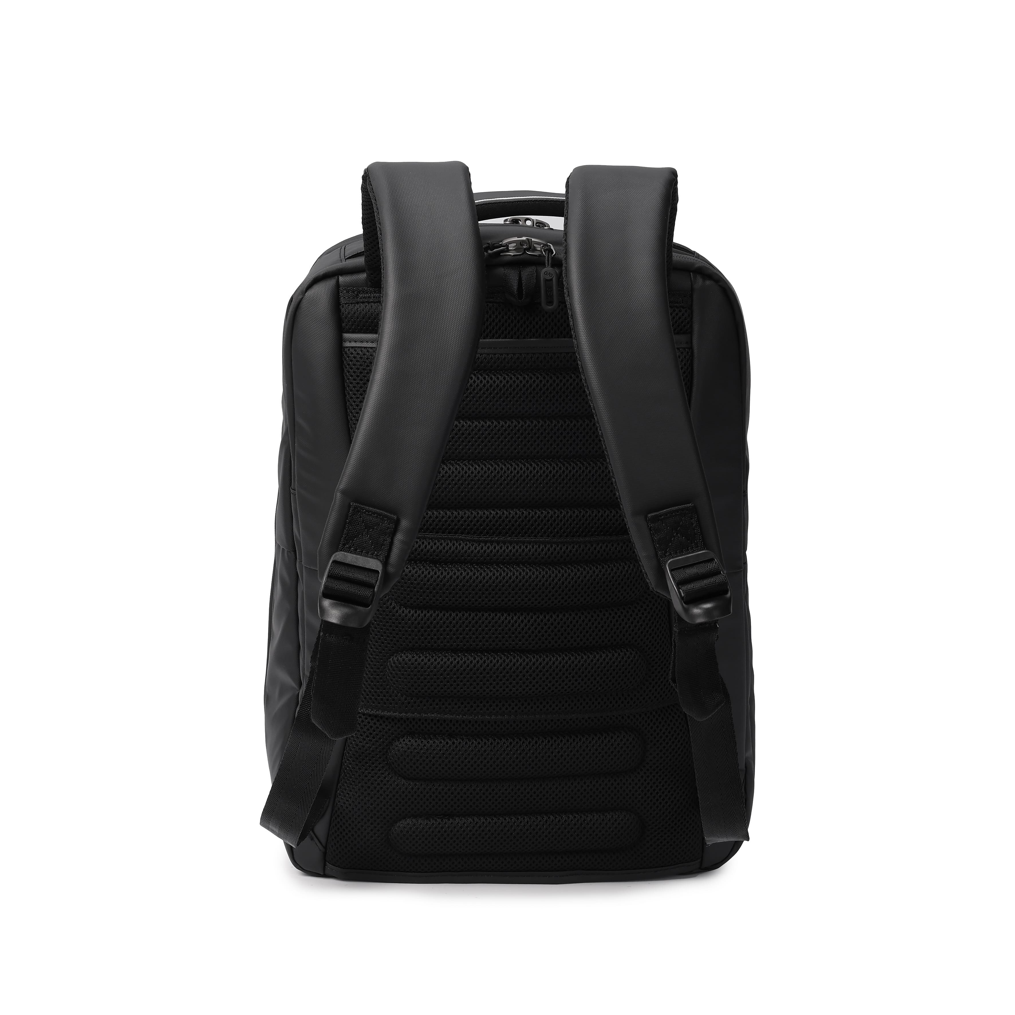 Вместительный рюкзак подойдет как для ежедневного использования, так и для путешествий. Внешняя и внутренняя ткани изготовлены из 100% переработанных и сертифицированных материалов RPET (переработанные пластиковые бутылки). Имеет два основных отделения, одно из которых со сдерживающими углами, где расположен дополнительный карман с RFID-защитой, отдел для смартфона и документов формата А4. Второй отдел для ноутбука 15.6", на молнии которого предусмотрена возможность разместить навесной замок. Передняя сторона оснащена карманом для вещей первой необходимости и светоотражающие элементы. На задней части рюкзака расположен карман для дождевика, планка для размещения изделия на крючек не деформируя и не повреждая ручки изделия. Также имеет боковые карманы для бутылки и зонтики.