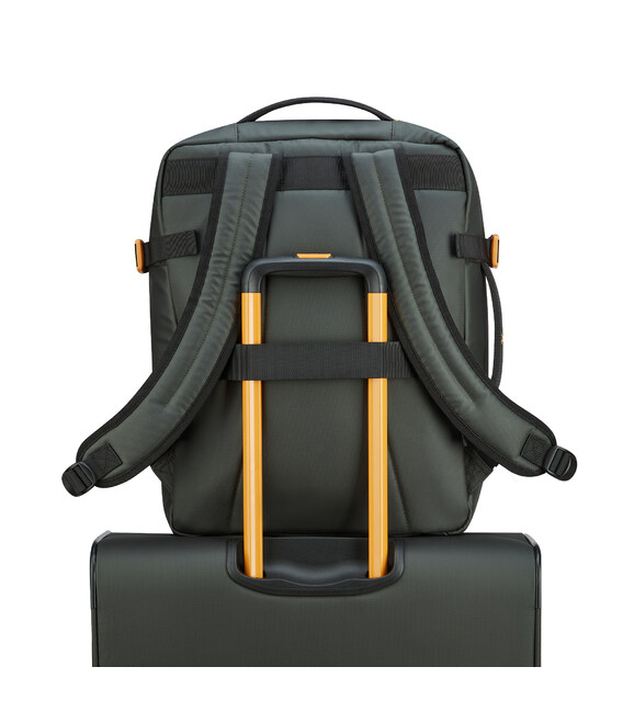 Идеальный вариант для командировок, в которых Вам понадобятся, предметы первой необходимости и место для одежды. Изделия коллекции изготовлены из волнистого полиэстера 900D с PU-покоем, которое защищает от дождя, брызг, влаги и быстро сохнет. Изделие оснащено: компактным основным отделом с карманом для мелких предметов с сетчатой перегородкой для организации и разделения одежды с эластичными прижимными ремнями. Размер изделия позволяет брать рюкзак на борт самолета авиакомпании EASYJET. Для удобства перемещения на задней части расположены мягкие плечевые ремни, боковая ручка для горизонтальной переноски и тканевая крепежная планка на телескопической ручке чемодана.