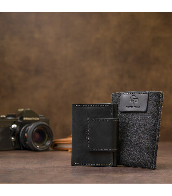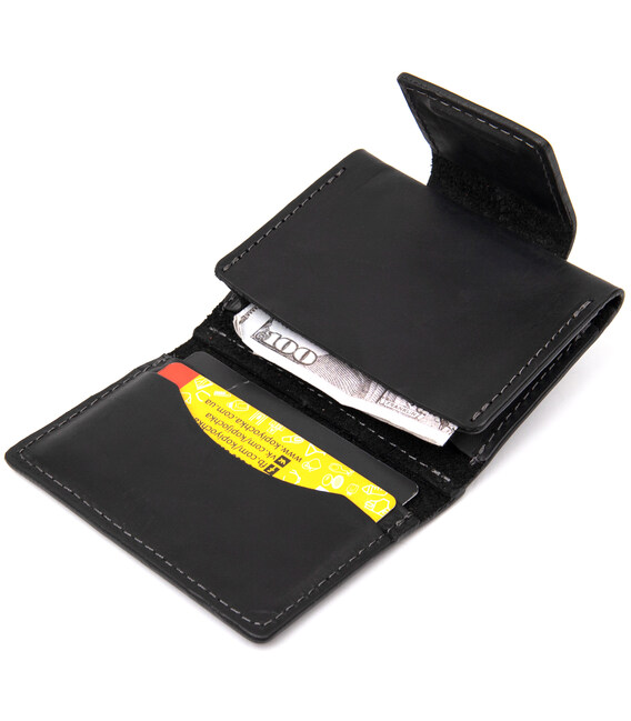 Практичная небольшая визитница из высококачественной натуральной кожи. Имеет универсальный черный цвет. Закрывается изделие на хлястик со скрытым магнитом, что очень удобно во время использования, так как карты легкодоступны. Такой презент станет отличным знаком внимания для дорогого Вам человека.