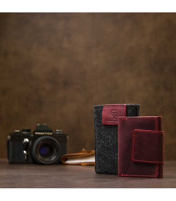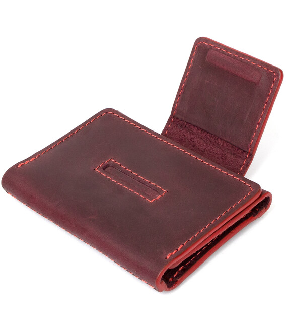 Описание Винтажная кожаная визитница GRANDE PELLE 11408 Бордовый