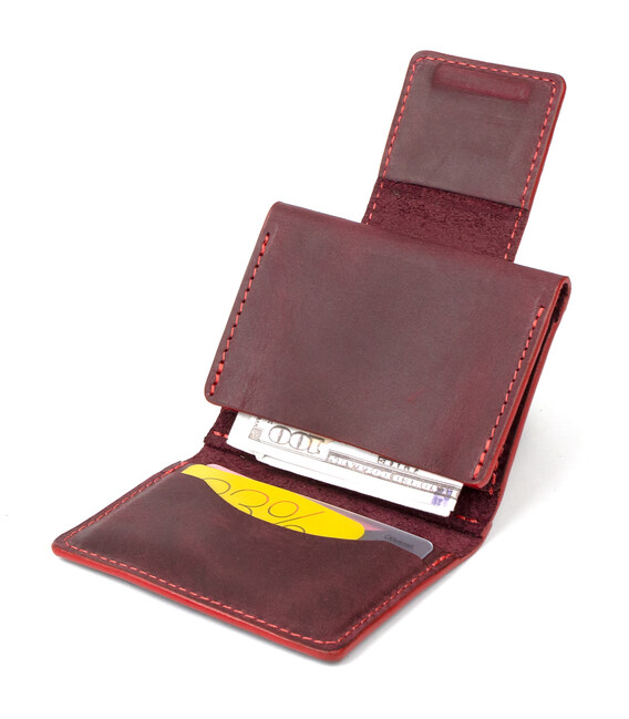 Винтажная кожаная визитница GRANDE PELLE 11408 Бордовый
