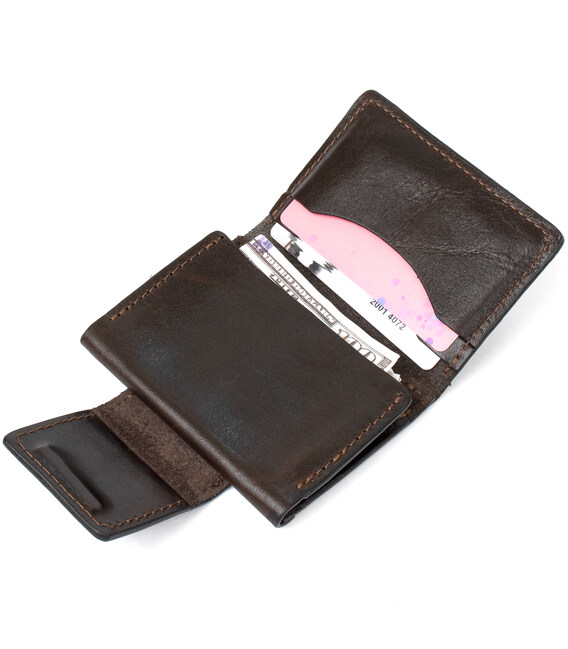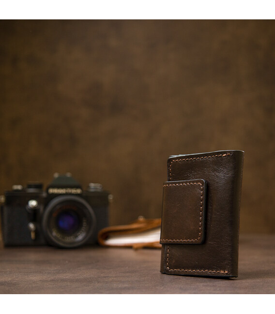 Компактная, но в то же время вместительная кожаная визитница для карт от украинского производителя. Выполнена из высококачественной натуральной кожи в мягкой и приятной на ощупь фактуре. Закрывается аксессуар на хлястик со скрытым магнитом. Идеально подойдет на подарок родному человеку.