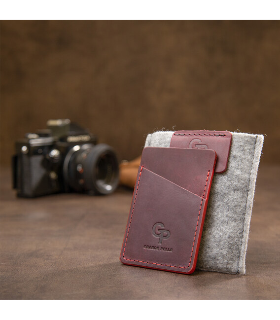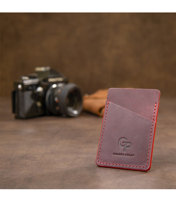 Описание Винтажный кожаный картхолдер GRANDE PELLE 11504 Бордовый