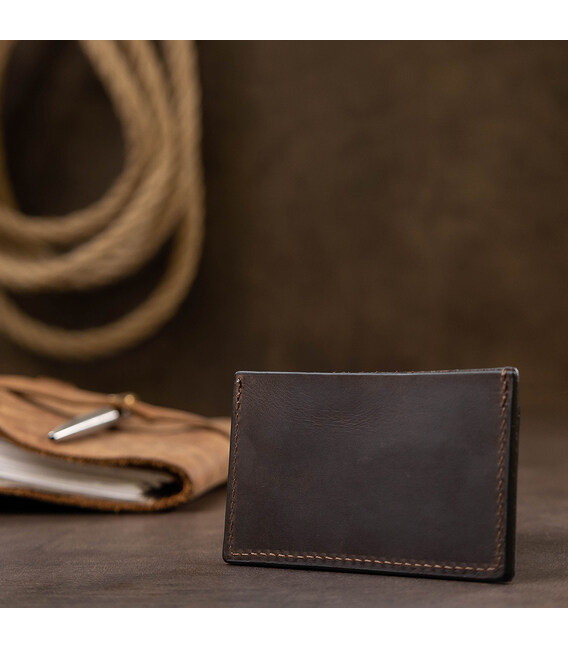 Небольшой кожаный картхолдер для хранения самых важных карточек. Выполнен из натуральной кожи с отличными эксплуатационными характеристиками, поэтому прослужит Вам очень долго. Цвет изделия – универсальный коричневый. Упаковка представлена в виде фирменного чехла с логотипом бренда.
