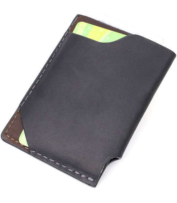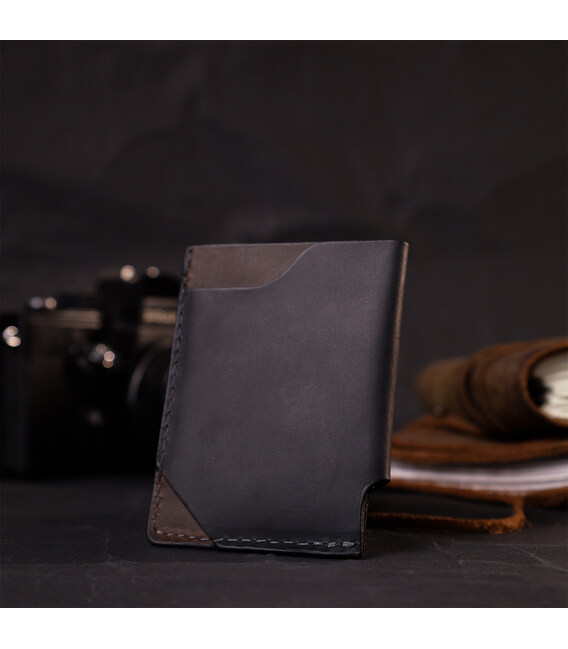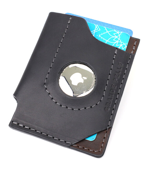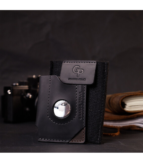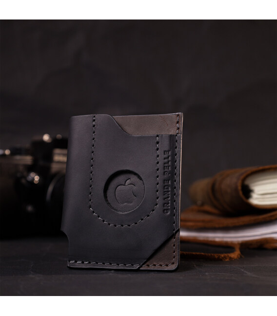 Описание Интересный картхолдер с держателем для Apple AirTag из натуральной кожи GRANDE PELLE 11608 Черный