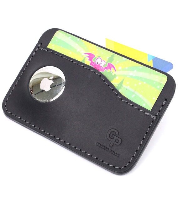 Описание Горизонтальный картхолдер с держателем для Apple AirTag из натуральной кожи GRANDE PELLE 11611 Черный
