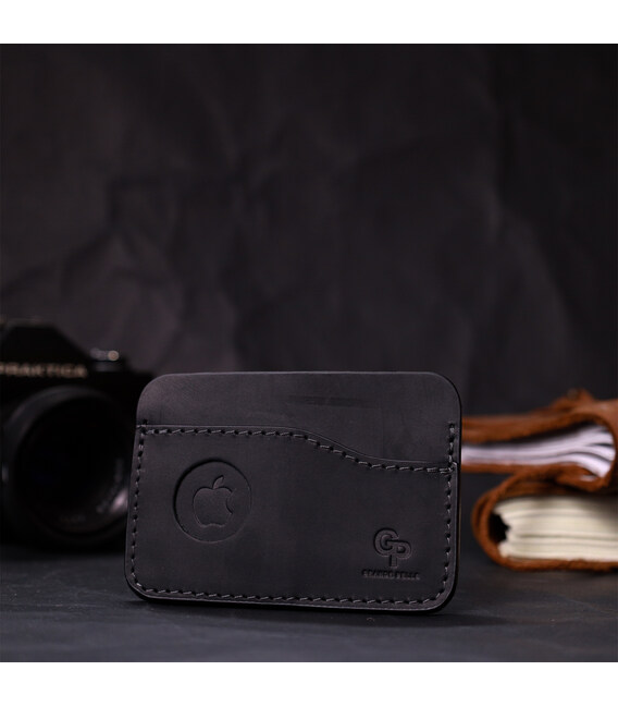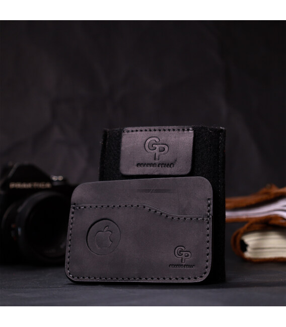 Горизонтальный картхолдер с держателем для Apple AirTag из натуральной кожи GRANDE PELLE 11611 Черный