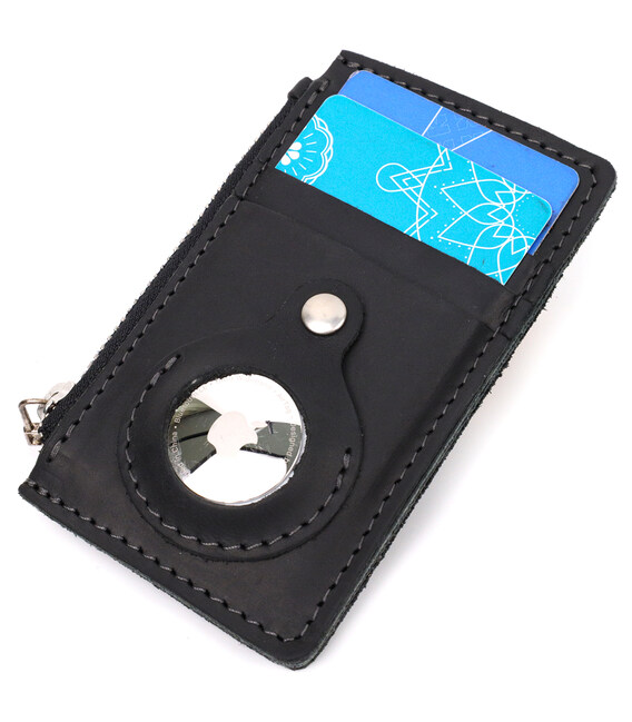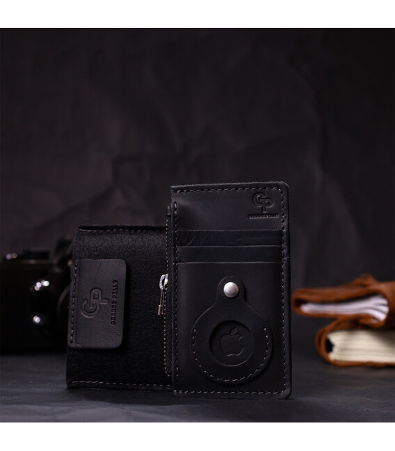 Описание Вертикальный картхолдер с держателем для Apple AirTag из натуральной кожи GRANDE PELLE 11626 Черный