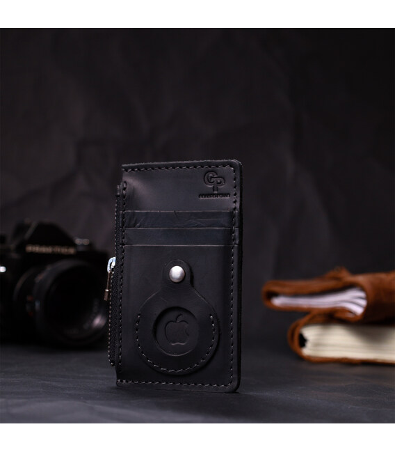 Вертикальный картхолдер с держателем для Apple AirTag из натуральной кожи GRANDE PELLE 11626 Черный