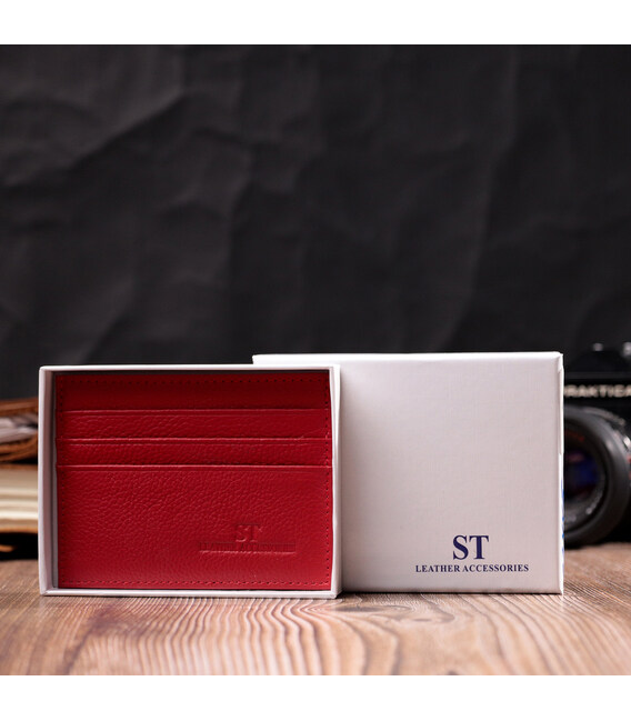 Яркий кард-кейс из натуральной кожи ST Leather 22445 Красный