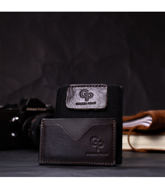 Удобный кожаный кард-кейс ручной работы из натуральной высококлассной кожи. На лицевой стороне изделие имеет тисненый логотип производителя Grande Pelle, а также прошит по краю ровной строчкой под цвет изделия. Аксессуар состоит из двух отделений под карточки. Благодаря компактным размерам аксессуара он отлично помещается в кошелек, карман или сумку любого размера. Отличный аксессуар для современного человека.