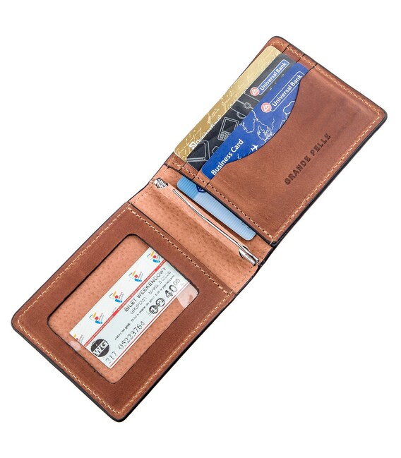 Описание Компактный зажим для денег без застежки GRANDE PELLE 11240 Коричневый