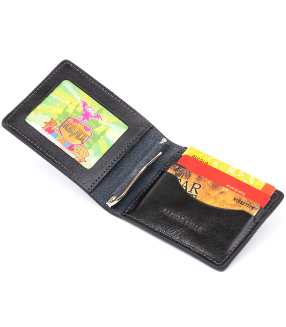Описание Стильное портмоне с зажимом для денег без застежки GRANDE PELLE 11295 Черное
