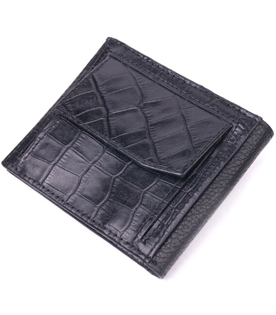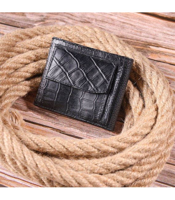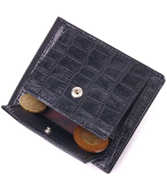 Описание Мужской зажим с монетницей из натуральной кожи с тиснением под крокодила KARYA 21406 Черный