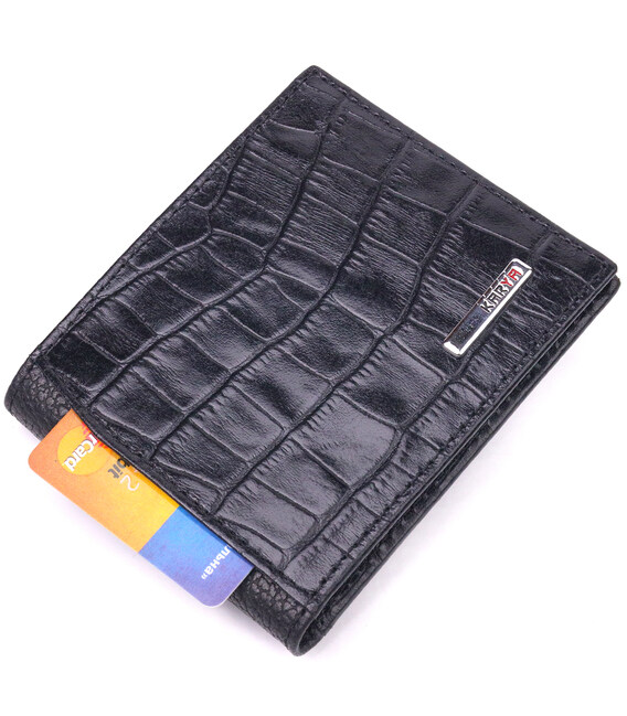 Мужской зажим с монетницей из натуральной кожи с тиснением под крокодила KARYA 21406 Черный